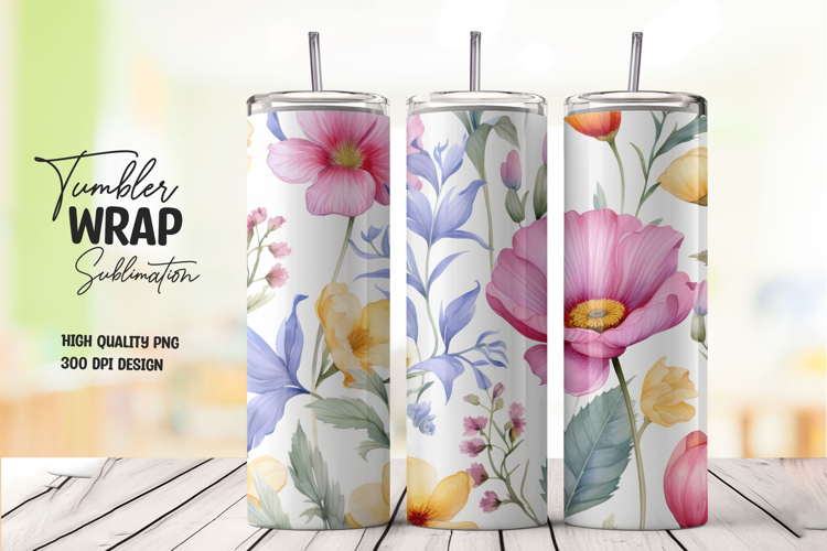 Watercolor Pastel Flowers Tumbler Wrap PNG example image 1