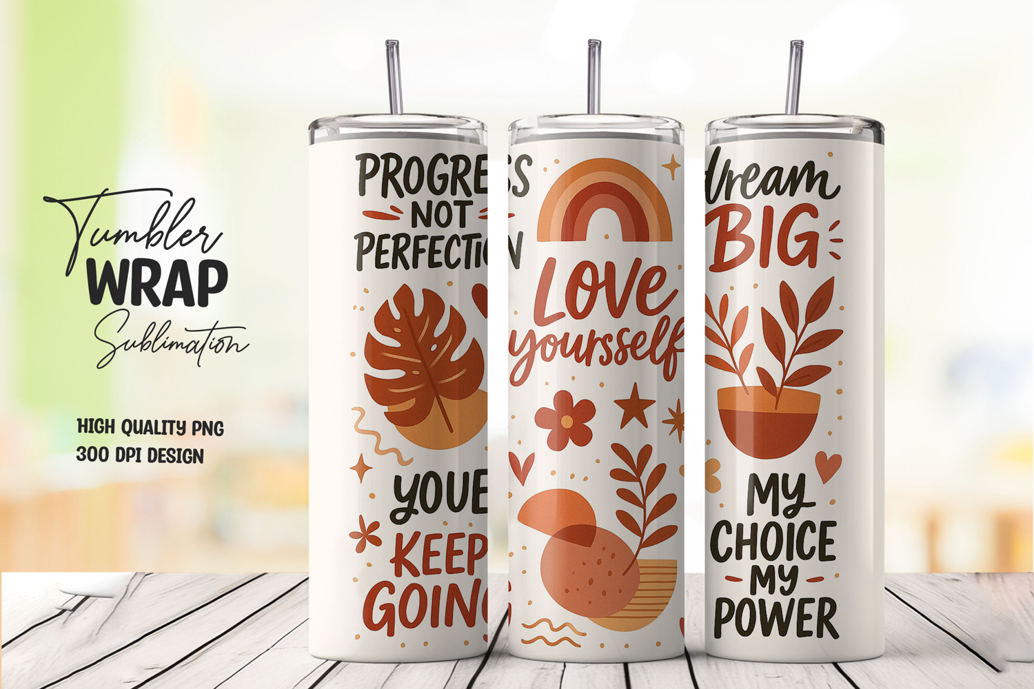 Good vibes only motivational tumbler wrap with plants example image 1
