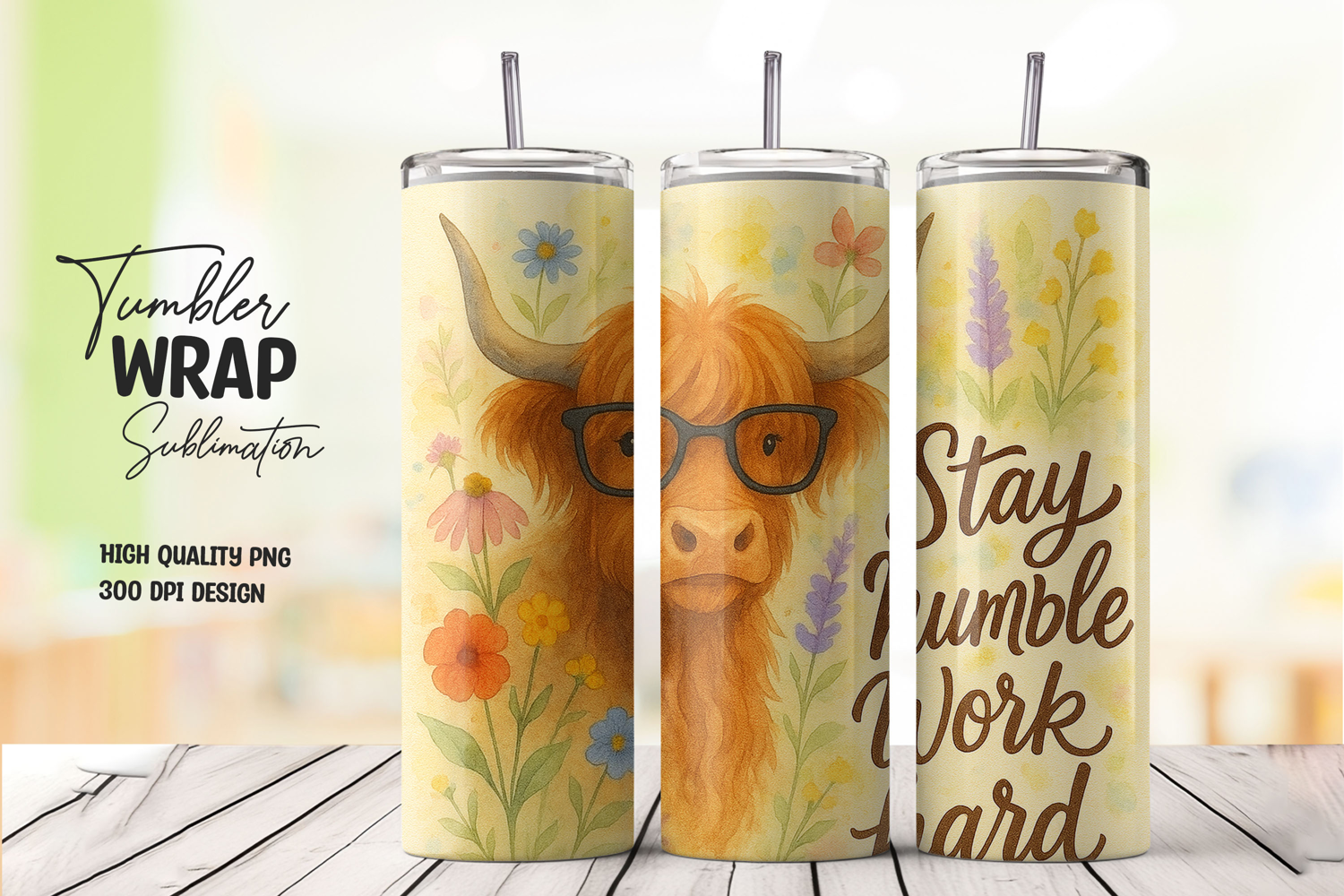 Stay humble work hard tumbler wrap with floral cow example image 1