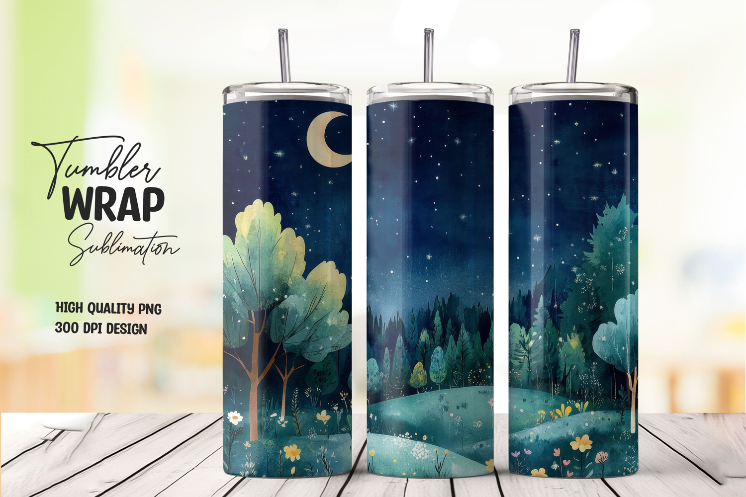 Nature Floral Artistic Flowers Vibrant Moon Sky Sublimation Starry Night 20oz Tumbler Png