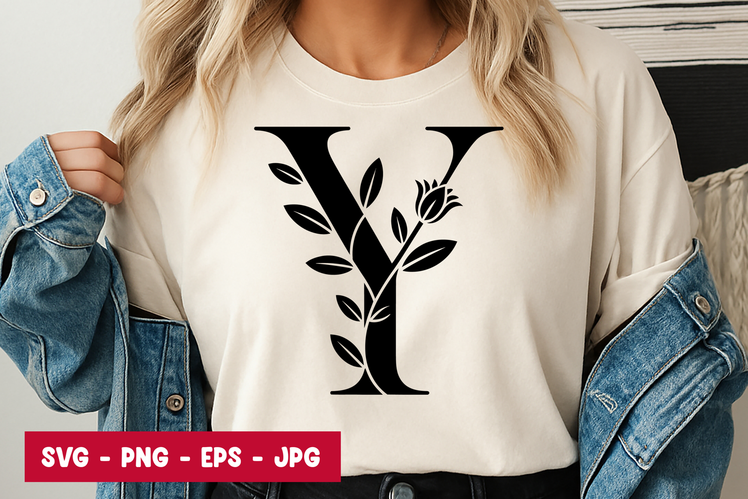 Letter Vector Svg Design T-shirt Floral Alphabet Branch Png Y