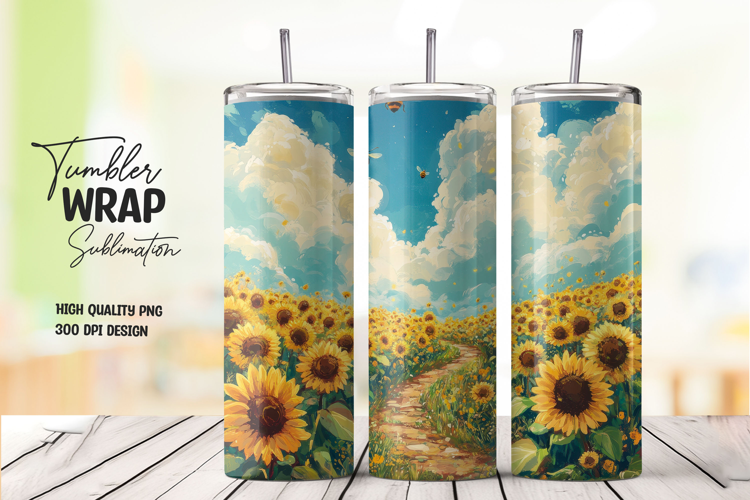 Flowers Blue Yellow Sky Wrap Sublimation Tumbler 20oz Tumbler Tumbler Wrap Sunflower