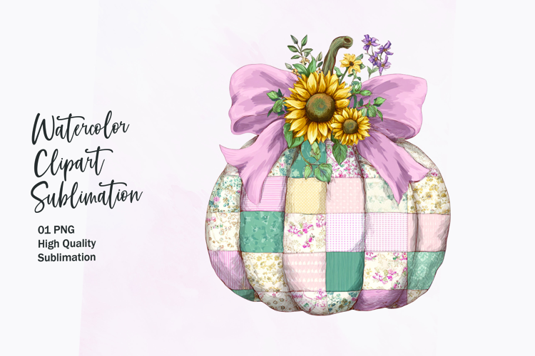 Floral Pumpkin with Bow Watercolor Clipart Sublimation