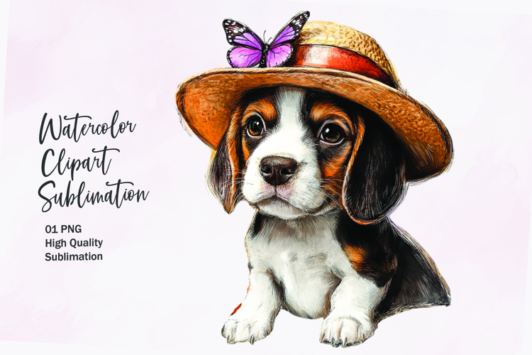 Cute puppy with flowers head watercolor clipart sublimation example image 1