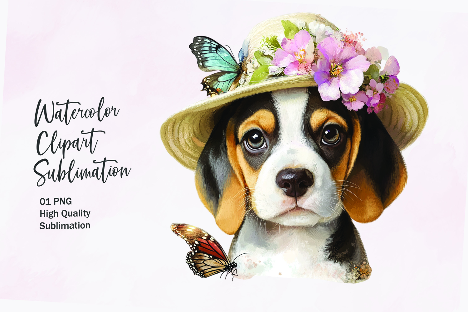 Cute puppy with flowers head watercolor clipart sublimation example image 1