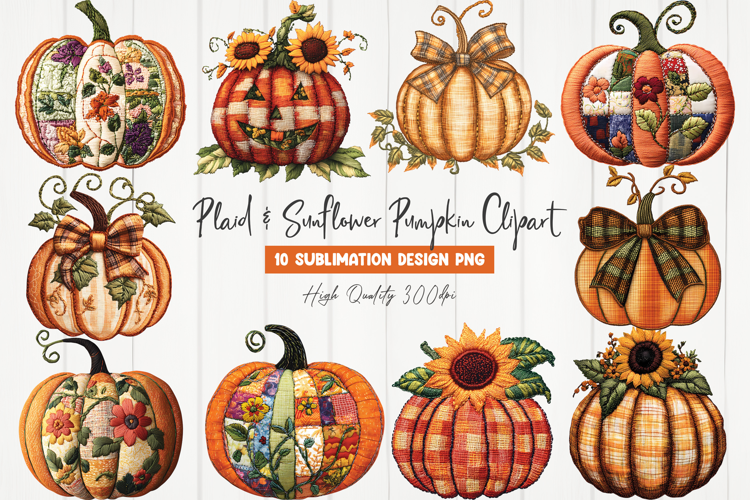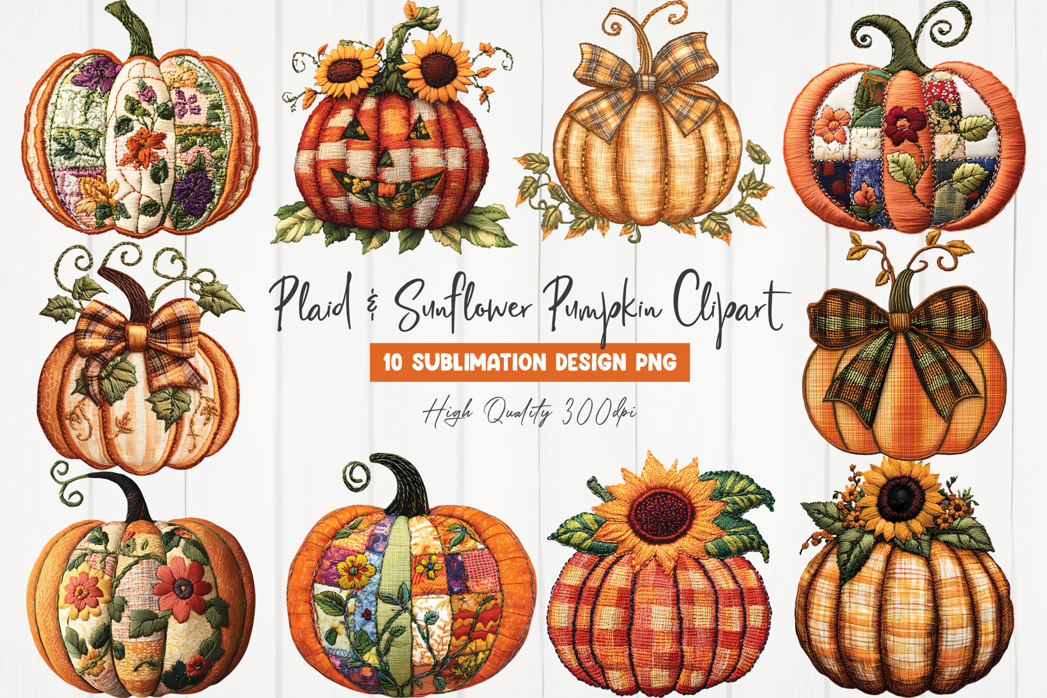 Plaid & Sunflower Pumpkin Clipart example image 1