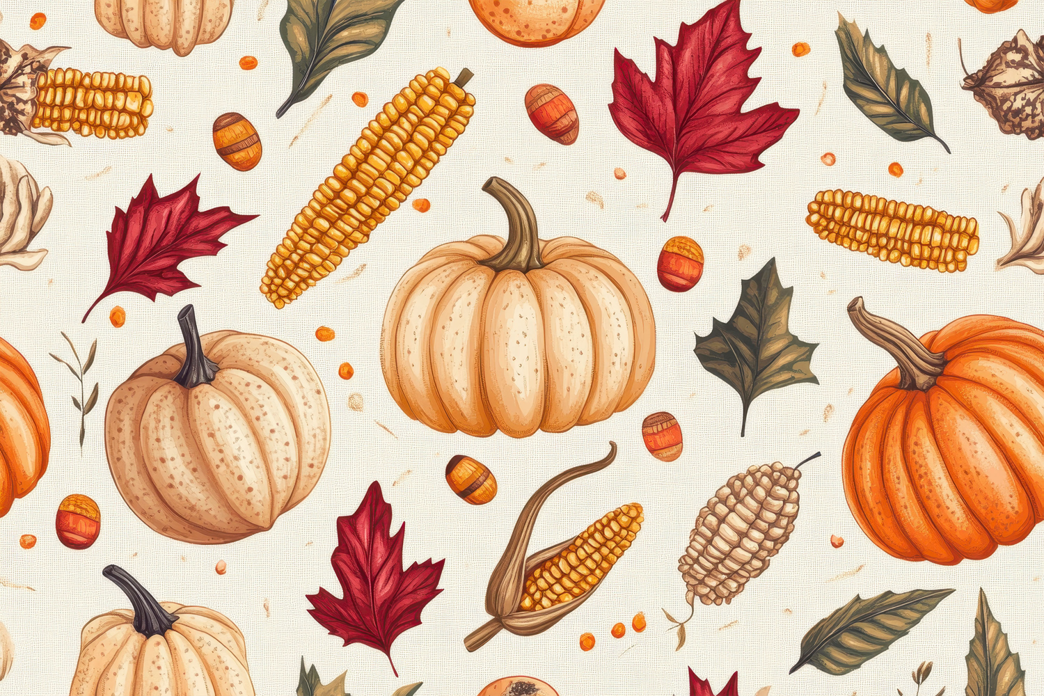 Similar Design Products to Pumpkins with Leaves and Corn Autumn Background