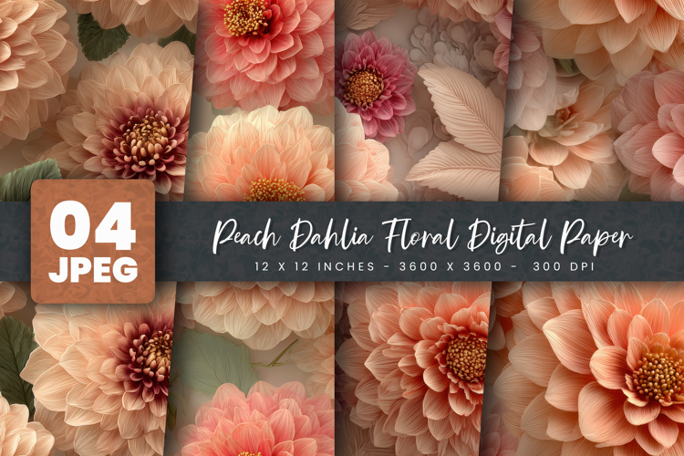 Similar Design Products to Peach Dahlia Floral Digital Paper