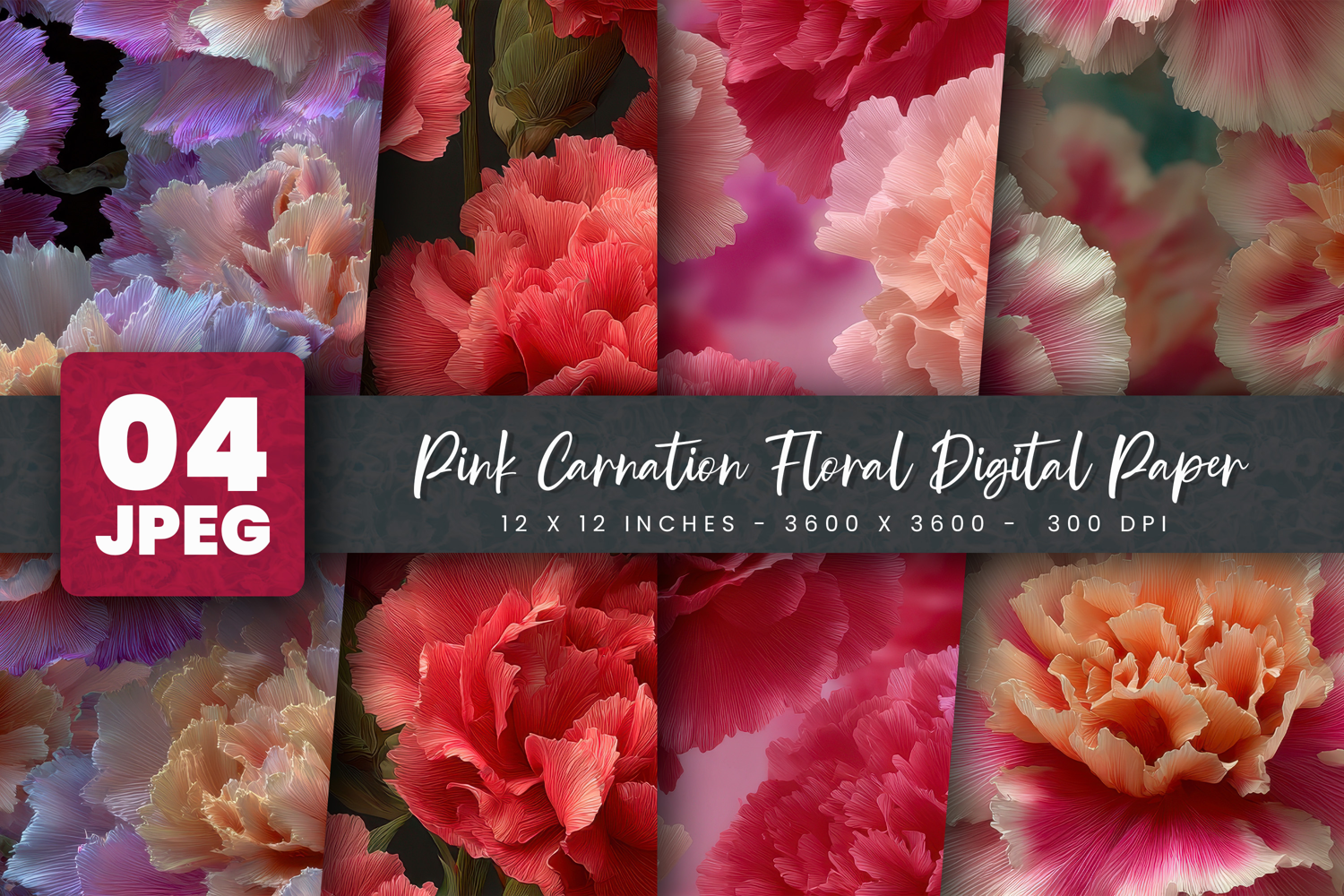 Similar Design Products to Pink Carnation Floral Digital Paper