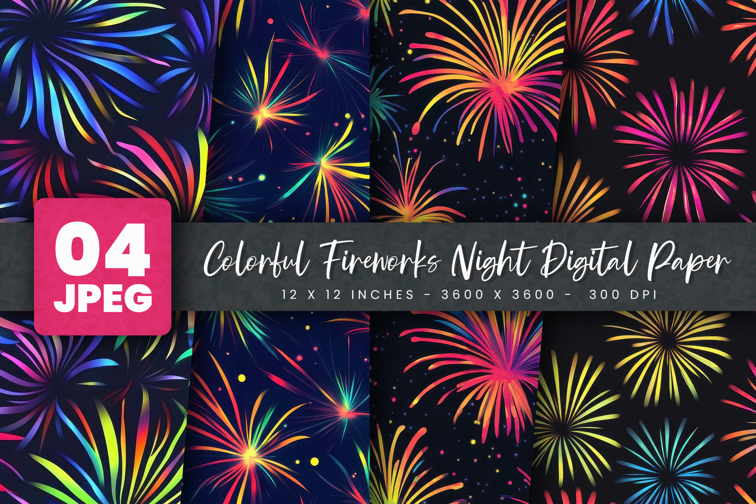 Similar Design Products to Colorful Fireworks Night Digital Paper