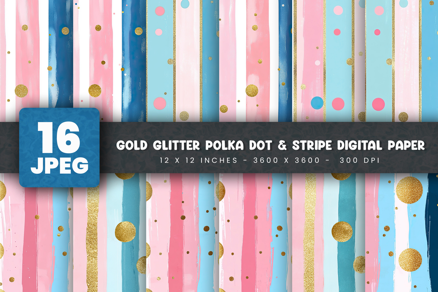 ✨ Add sparkle to your creative projects with this Gold Glitter Stripes & Polka Dots Digital Paper Bundle!
