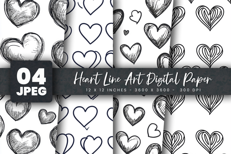 Heart Line Art Digital Paper