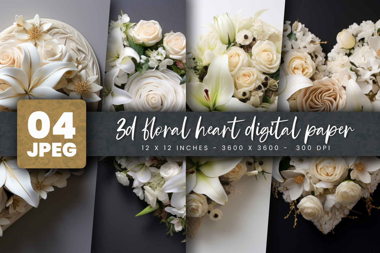 3d floral heart digital paper