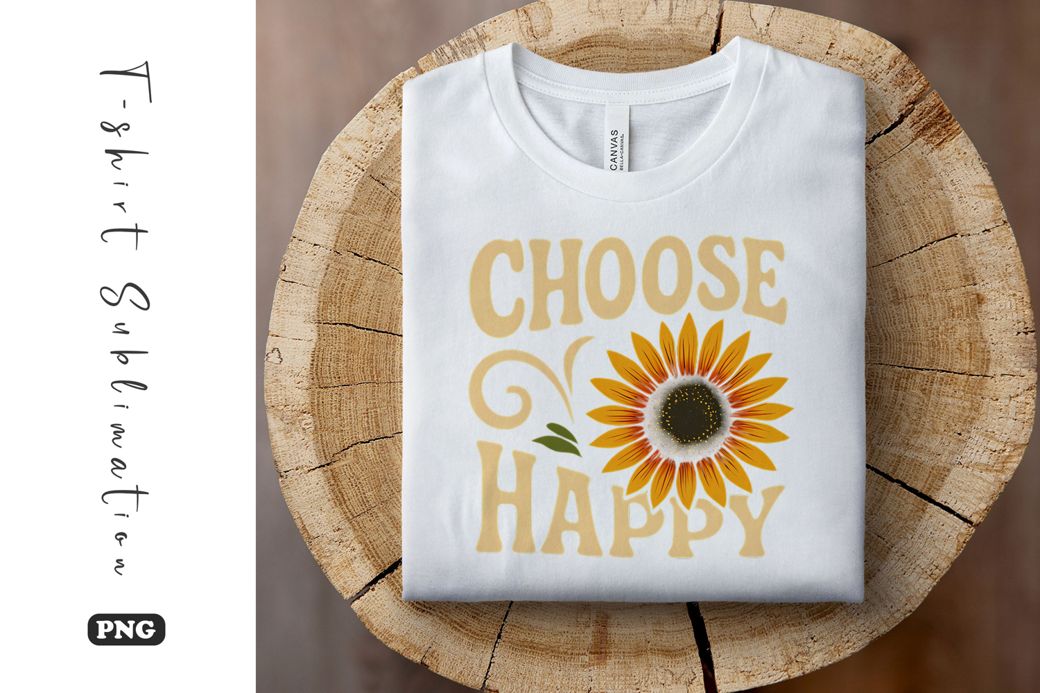 Choose Happy Sunflower Retro T-Shirt Sublimation example image 1