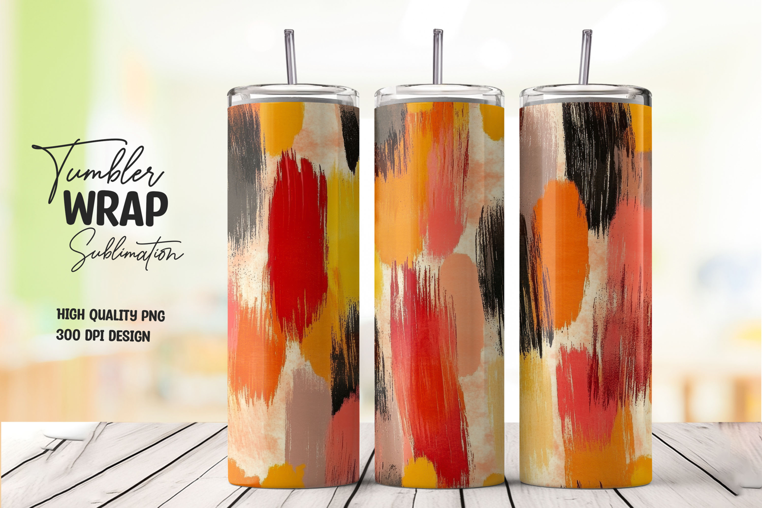 Modern Brush Color Bright Abstract Strokes Wrap Sublimation Tumbler 20oz Tumbler