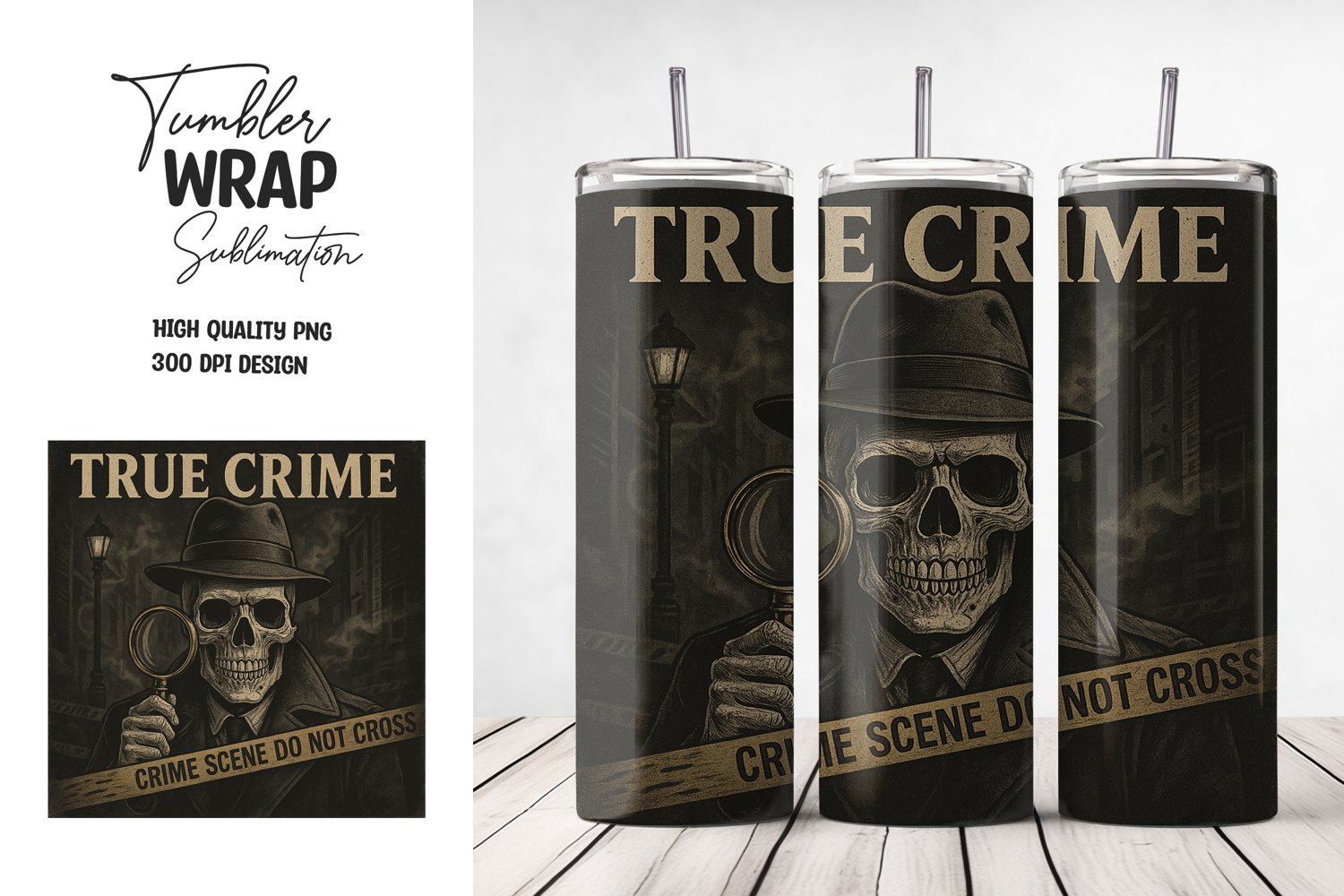 True Crime Tumbler Wrap Dark Aesthetic Sublimation Noir Detective Skull Gothic Mystery Tumbler Crime Scene Design Png Vintage Investigator Wrap Skull With Magnifying Glass Art Spooky Detective Artwork Forensic Tumbler Design Mystery Lover Gift Png