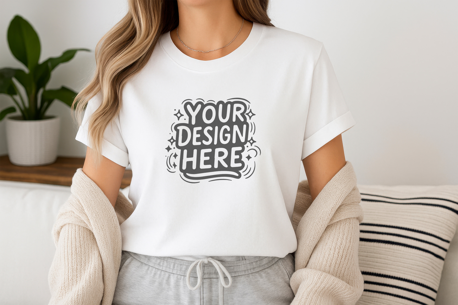Women Home Cozy T-Shirt Mockup PSD JPG