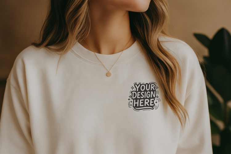 Similar Design Products to Women Necklace Detail Sweatshirt Mockup PSD JPG