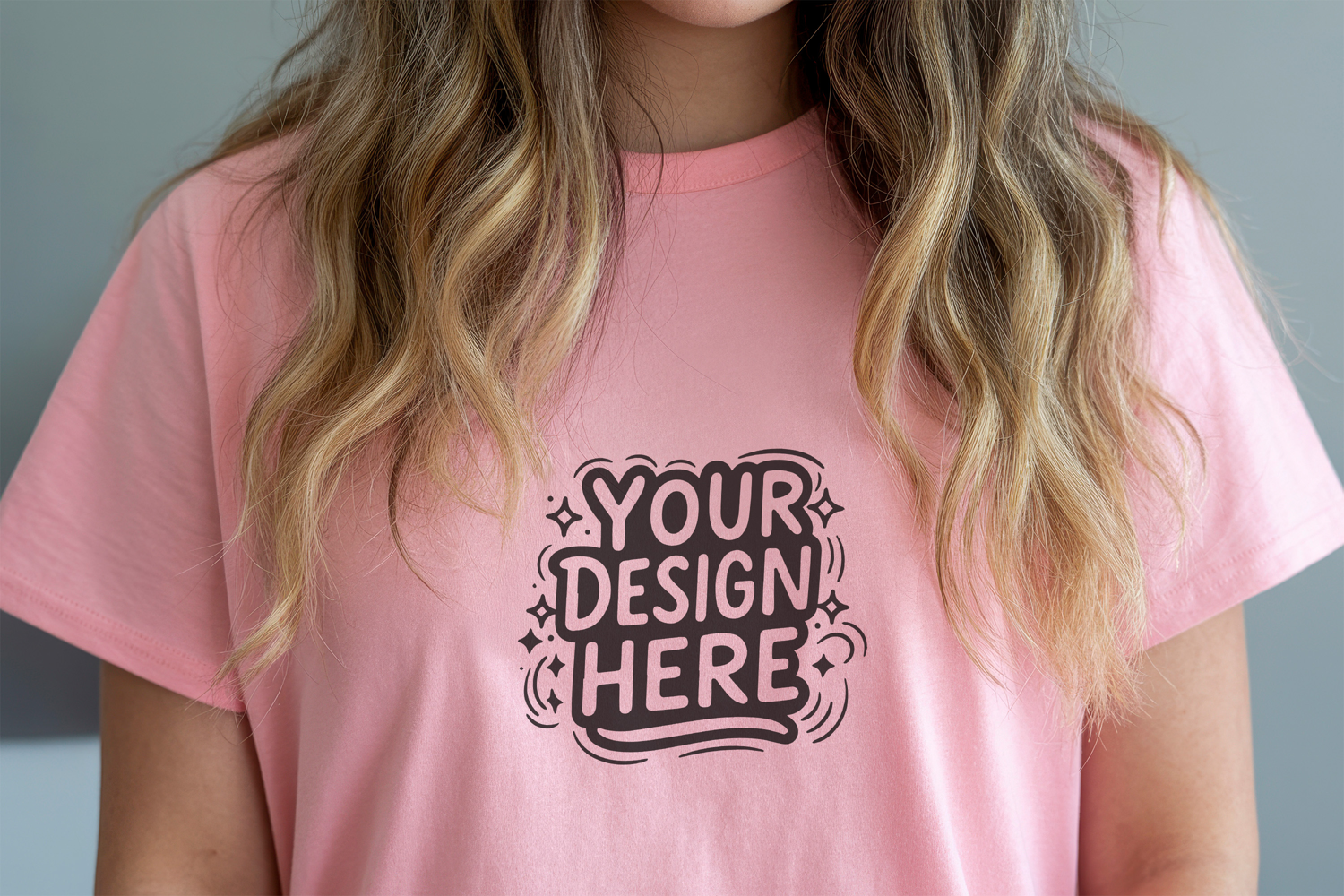 Women Soft Pink T-Shirt Mockup PSD JPG