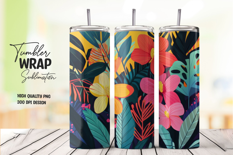 Modern Bold Colorful Floral Bright Pattern Tropical Exotic Sublimation Tumbler