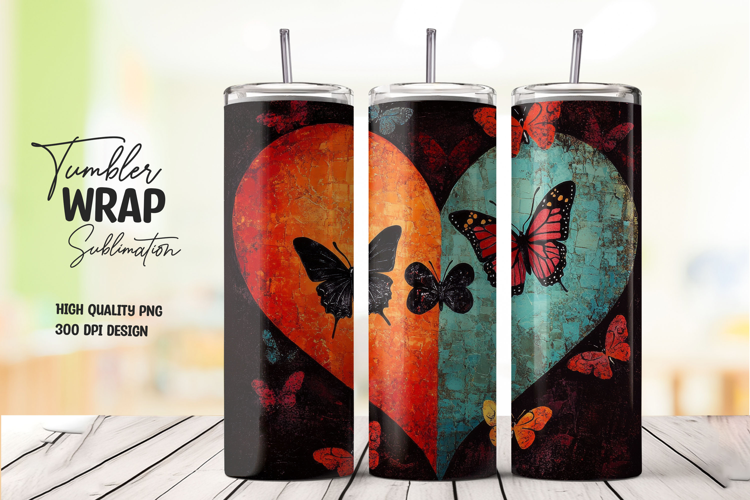 Romantic Love Art Heart Digital Butterfly Wrap Sublimation Tumbler 20oz Tumbler