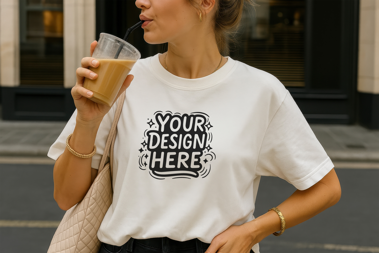Similar Design Products to Women Coffee Cup T-Shirt Mockup PSD JPG
