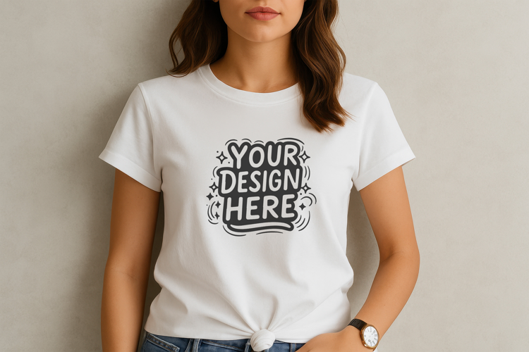 Modern Trendy Fashion Lifestyle Women Studio Tshirt Mockup Female Model Cotton Tee Knot Shirt