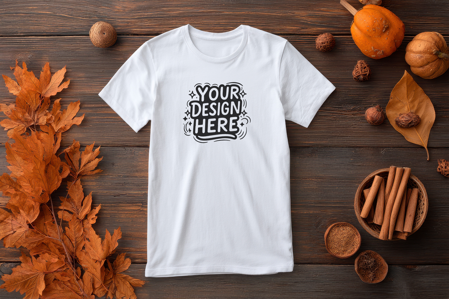 Rustic Autumn Pumpkin Seasonal Cozy Fall Decor Tshirt Mockup White Tee Orange Tone Cotton Shirt