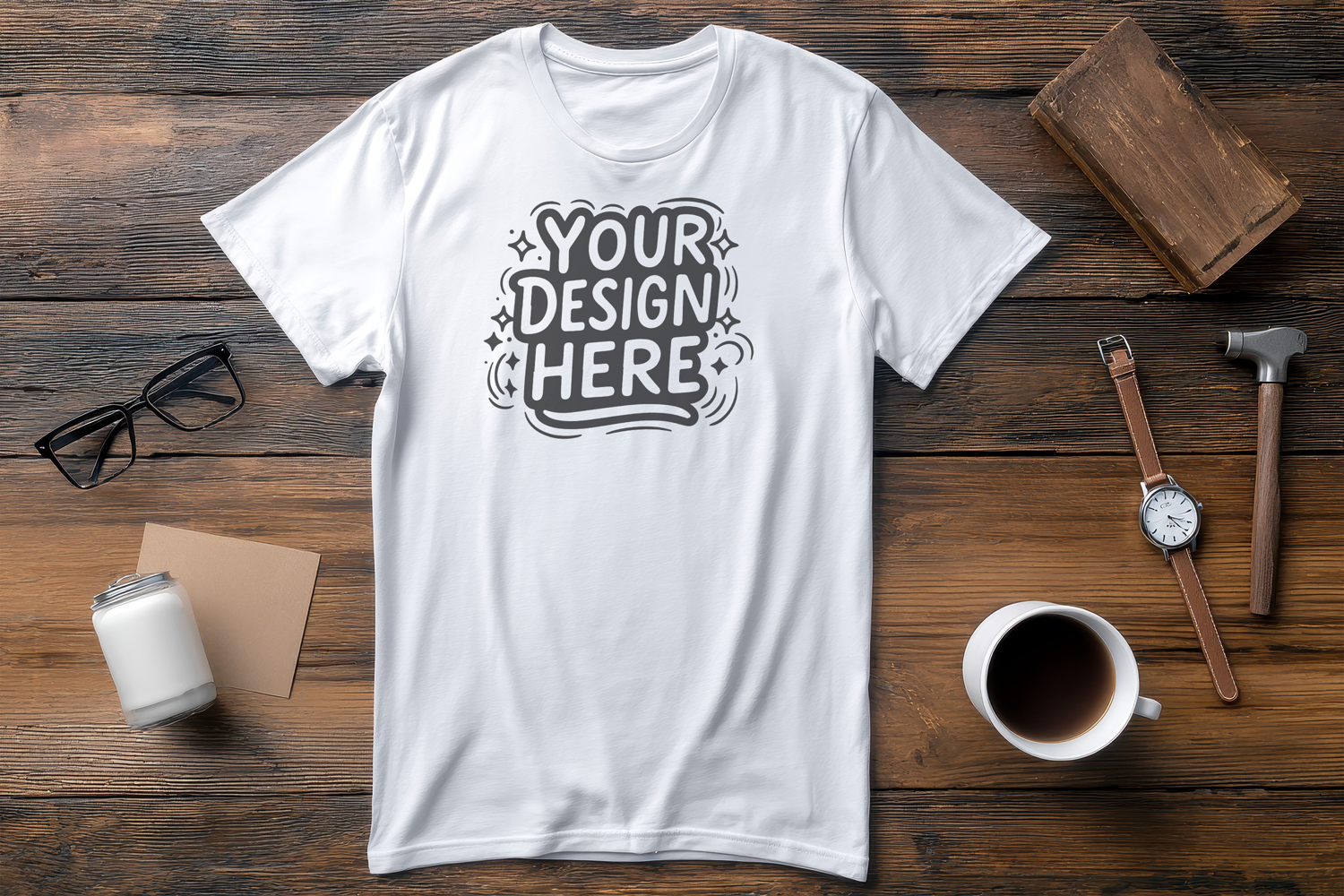 Coffee Mug Flatlay T-Shirt Mockup PSD JPG