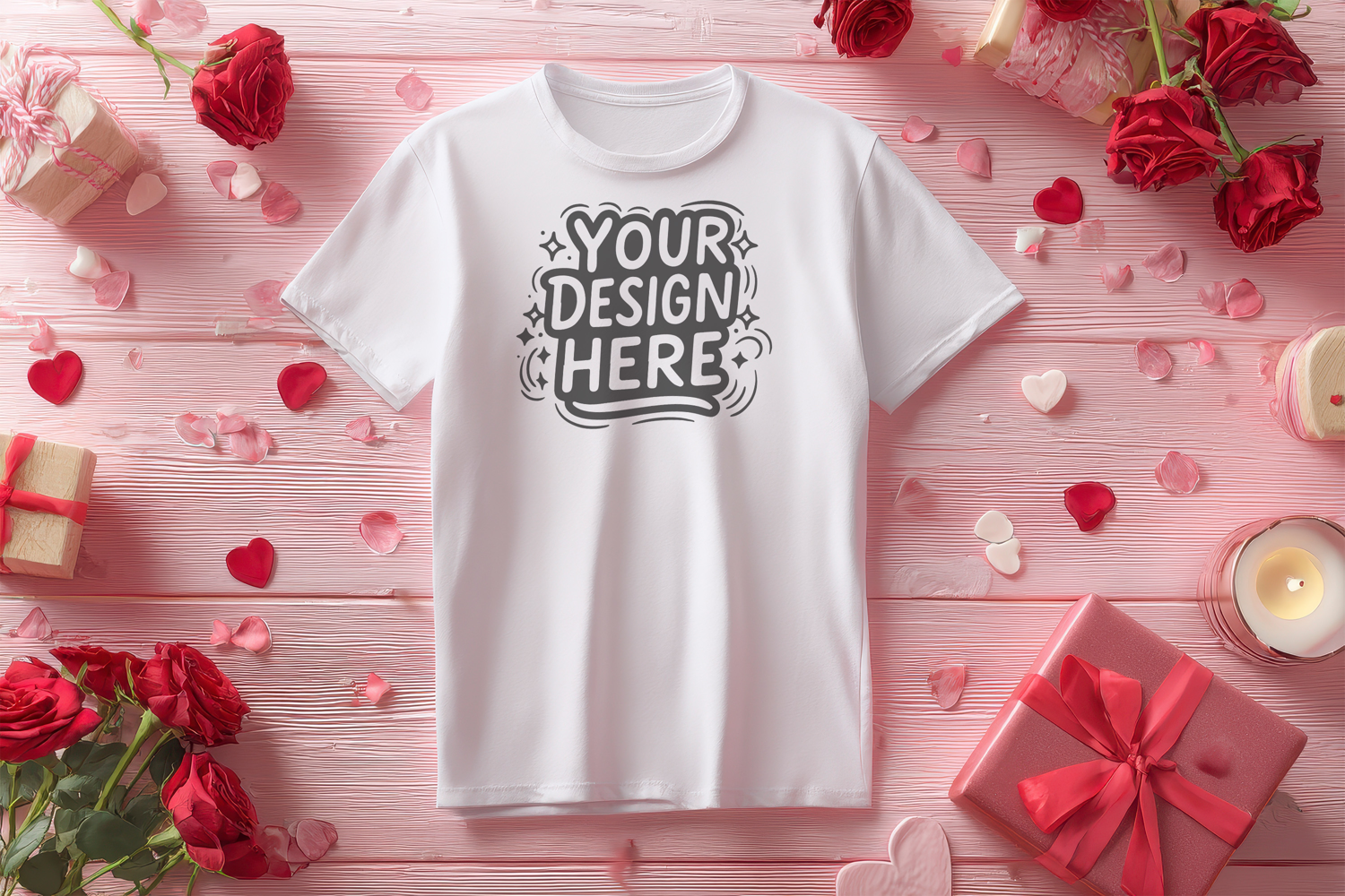 Valentine Feminine Romantic Rose Cozy White Shirt Tshirt Mockup Pink Tone Love Theme Cotton Tee