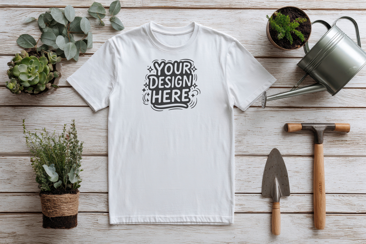 Modern Trendy Rustic Lifestyle Outdoor Garden Plants Tools Cozy Tshirt Mockup