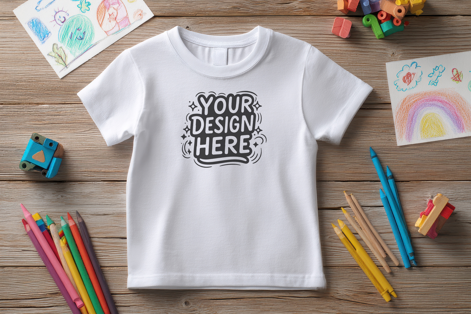 T-Shirt Mockup School Pencil PSD JPG example image 1