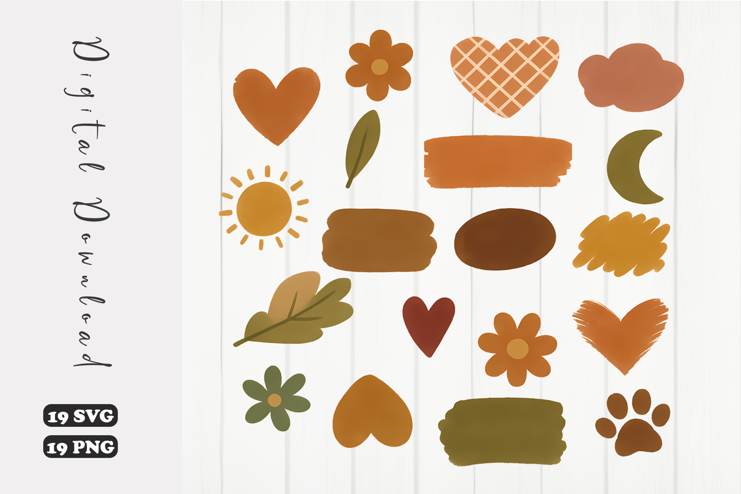 Earthy Fall Brush Stroke SVG Rustic Heart Leaf Sun Shape Clipart