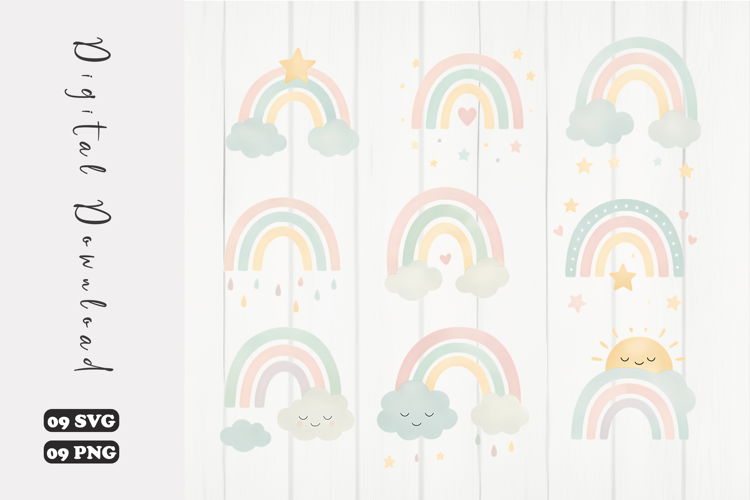 Nursery Wall Art Baby Shower Design Cute Cloud Clipart Pastel Rainbow Svg Digital Download Design Kawaii Style Svg Soft Color Png Celestial Rainbow Svg Dreamy Aesthetic Clipart Kids Decor Elements