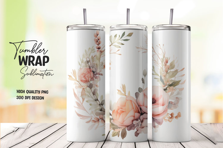 Soft Peach Floral tumbler wrap png example image 1