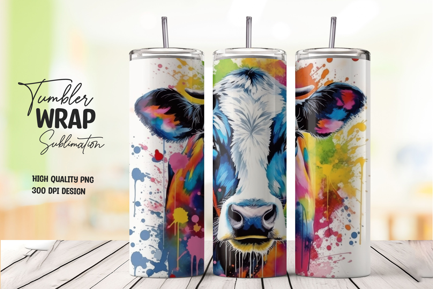 Watercolor Colorful Artistic Abstract Png Cow Wrap Sublimation Tumbler 20oz Tumbler