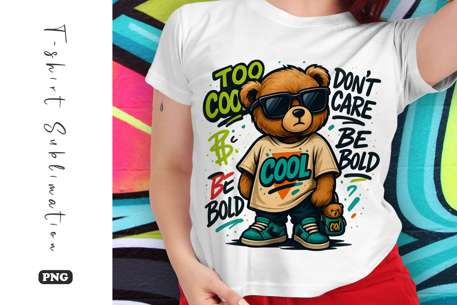 Too Cool T-shirt Design Be Bold Streetwear Bear Cool Bear Sublimation Urban Bear Illustration Graphic Tee For Teens Hip Hop Fashion Svg Confident Bear Design Streetwear Cartoon Bear Graffiti T-shirt Art Modern Youth Apparel