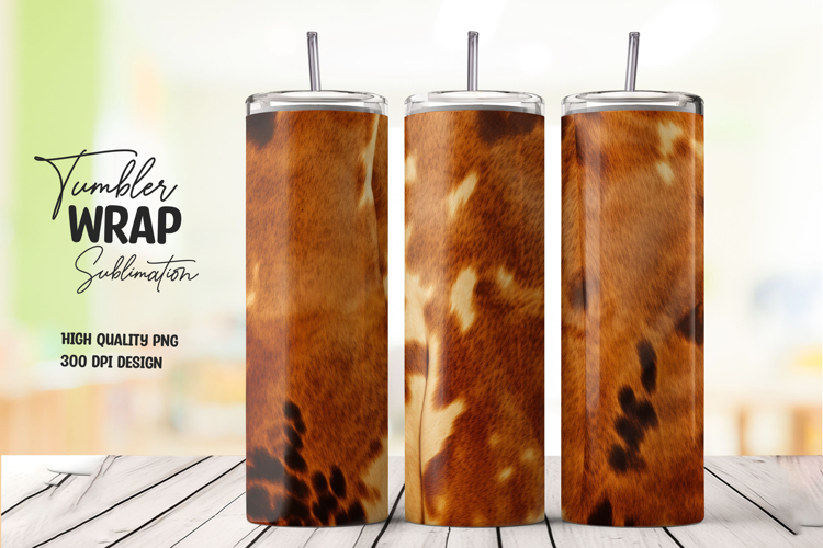 Rustic Western Brown Hide Leather Cow Wrap Sublimation Tumbler 20oz Tumbler