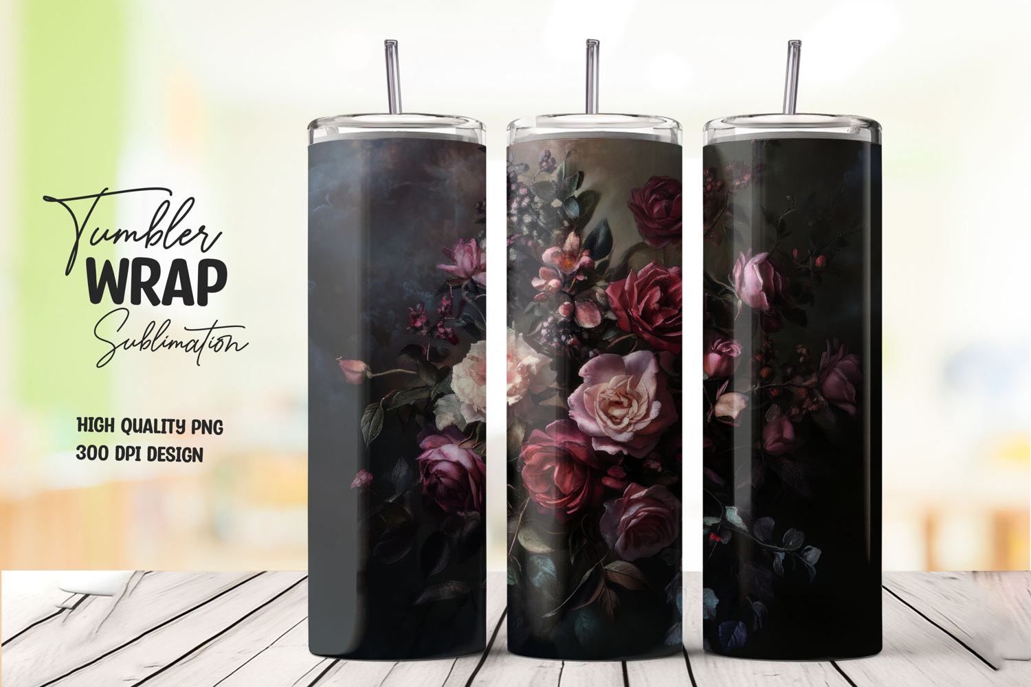 Black Floral Dark Bloom Rose Png Wrap Sublimation Tumbler 20oz Tumbler