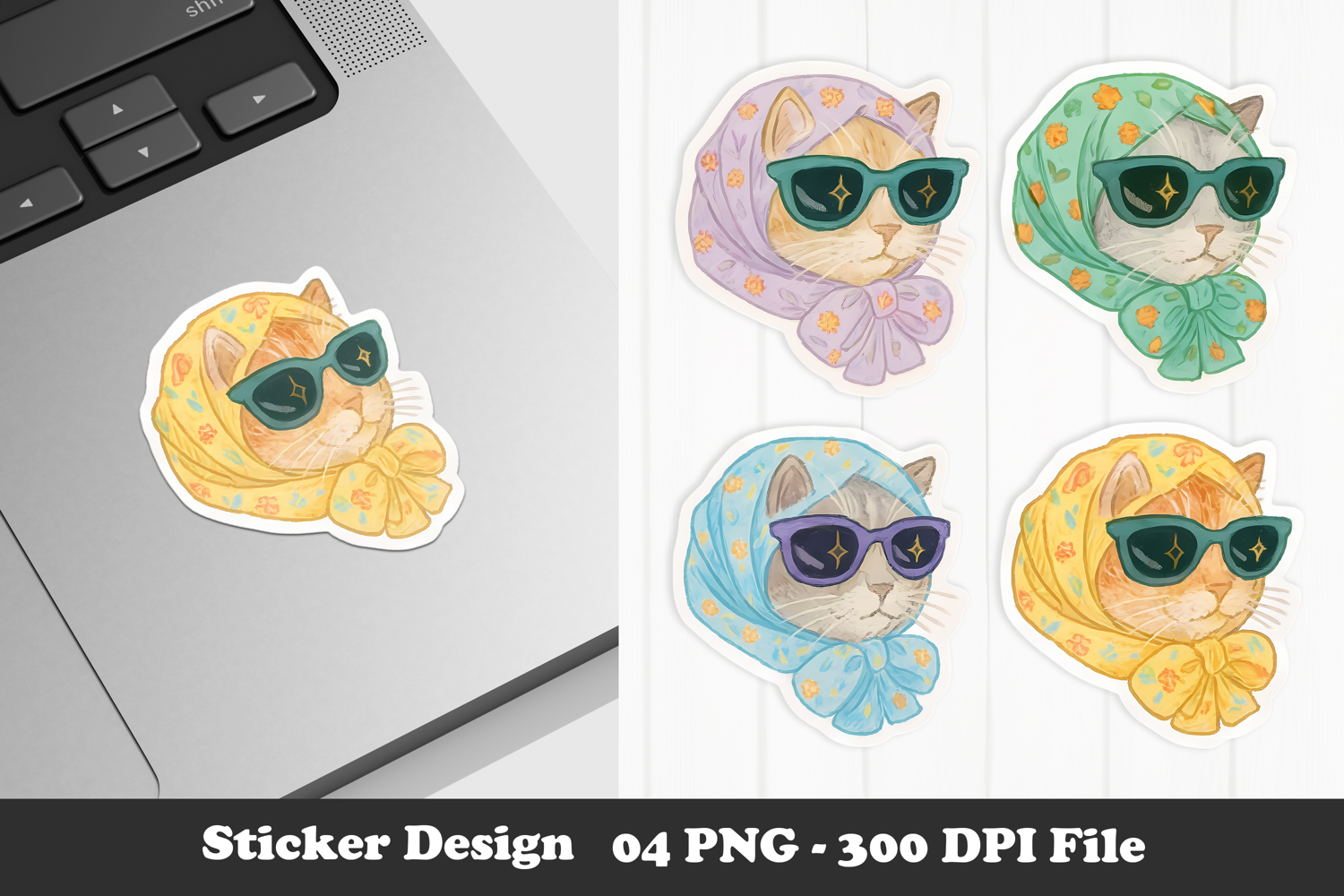 Stylish Cat Sticker Retro Scarf & Sunglasses Collection example image 1