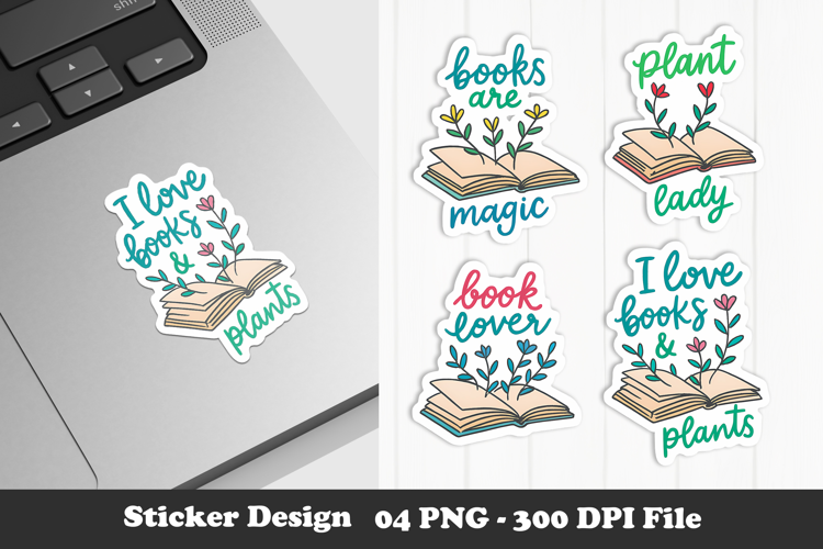 Book and Plant Lover Sticker – I Love Books & Plants Aesthetic PNG