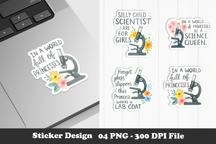 Science Lover Gift 300 Dpi Printable Sticker Science Queen Sticker Women In Science Png Girl Scientist Quote Lab Coat Princess Stem Girl Empowerment Feminist Science Art Microscope Floral Sticker Educational Motivational Png