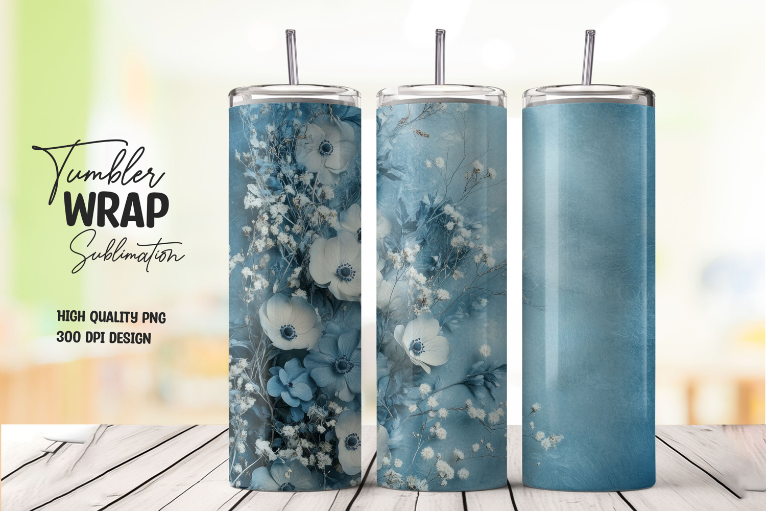 Elegant Floral Bloom Blue Png Pastel Wrap Sublimation Tumbler 20oz Tumbler
