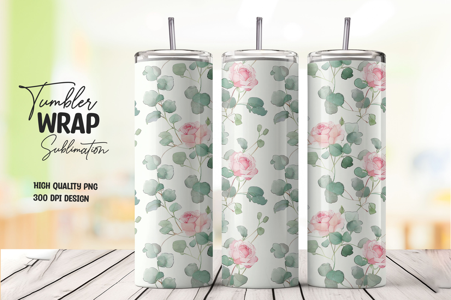Elegant Floral Bloom Rose Png Pastel Wrap Sublimation Tumbler 20oz Tumbler