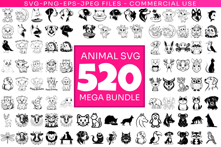 Unleash your creativity with this 520 Cute Animal SVG Mega Bundle 🐾✨. Packed with adorable pets, wild animals, and cute silhouettes, this set is perfect for Cricut projects, sublimation, stickers, print-on-demand, and more! From dogs and cats to bears, pandas, rabbits, birds, and many more species — this bundle gives you endless design possibilities.