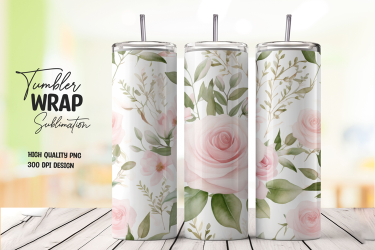 Elegant Pink Floral Garden Rose Png Wrap Sublimation Tumbler 20oz Tumbler