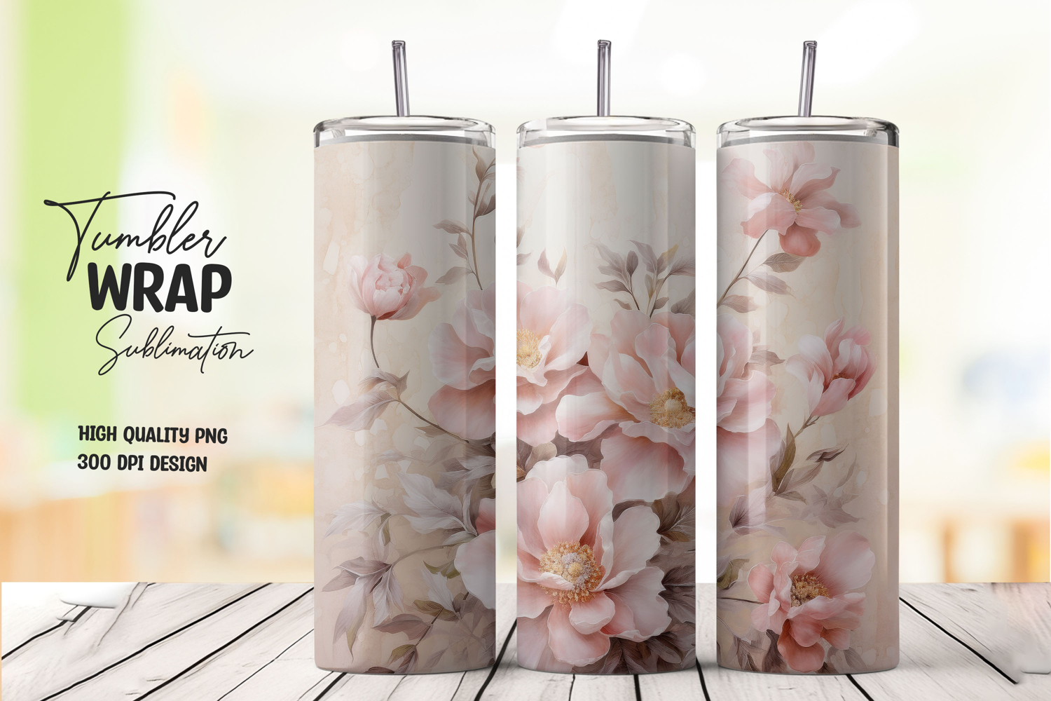 Blush Blossom tumbler wrap png example image 1