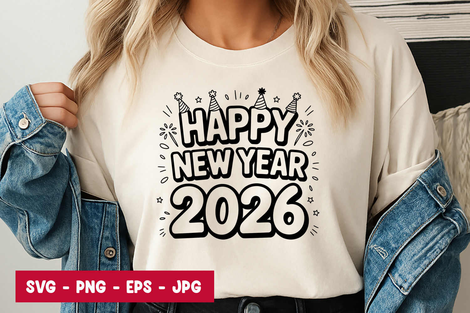 Happy New Year Svg Vector Cut File Svg For Tshirt Svg For Printing Printable Svg File Festive Svg Design Celebration Typography New Year 2026 Art 2026 Svg Png Digital Artwork Png