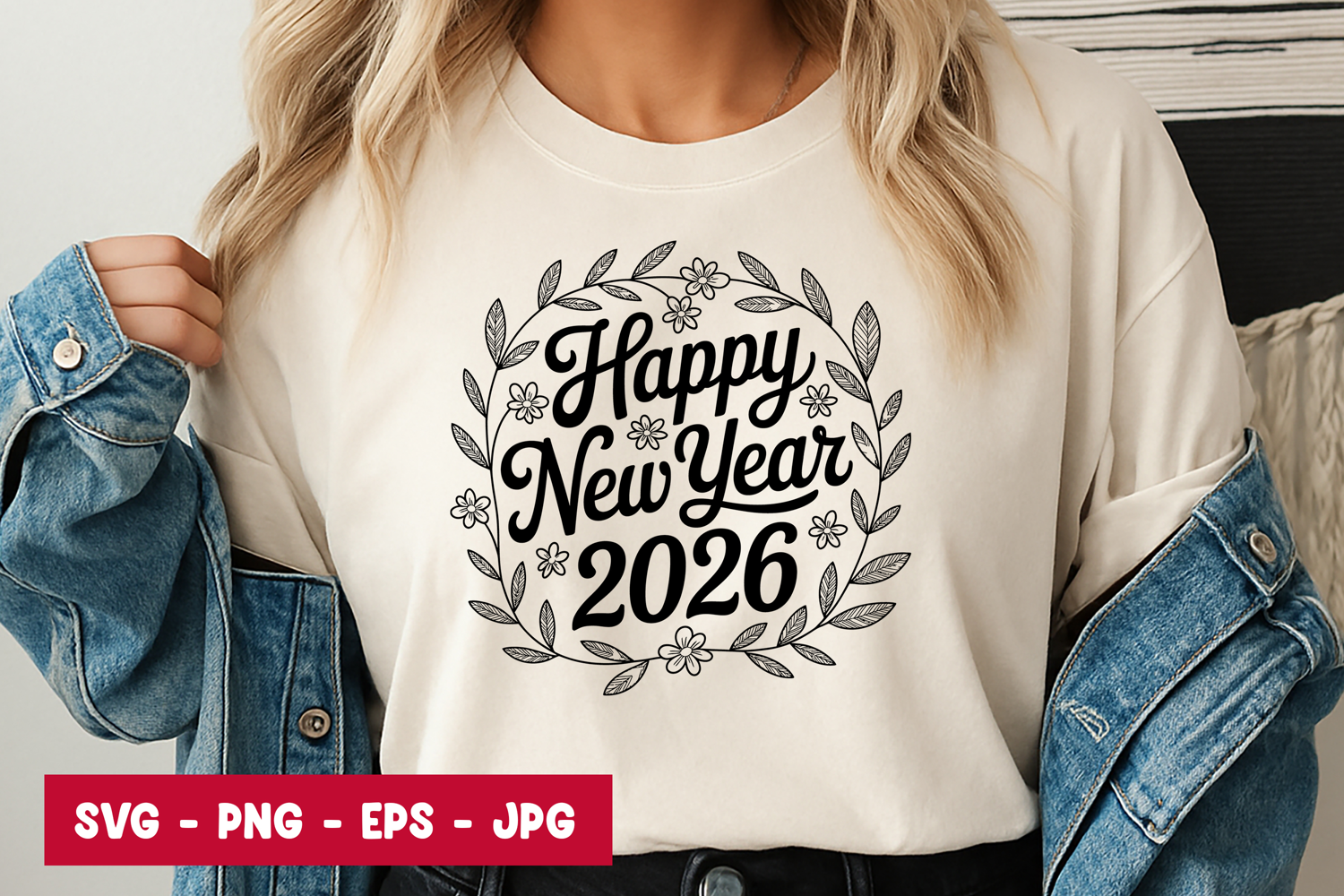 Happy New Year Svg Svg For Tshirt Cricut Cutting Svg New Year Png Digital Design File Festive Typography 2026 Svg Design Printable Svg Art Silhouette Vector File Vector Art Png