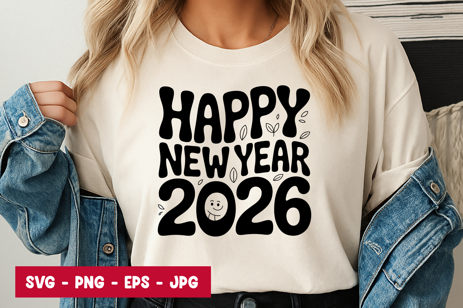 Happy New Year Svg Cricut Svg File New Year Clipart Svg For Tshirt Trendy Typography Digital Svg File Silhouette Vector Art Festive Text Png Svg Printable Design 2026 Vector Png